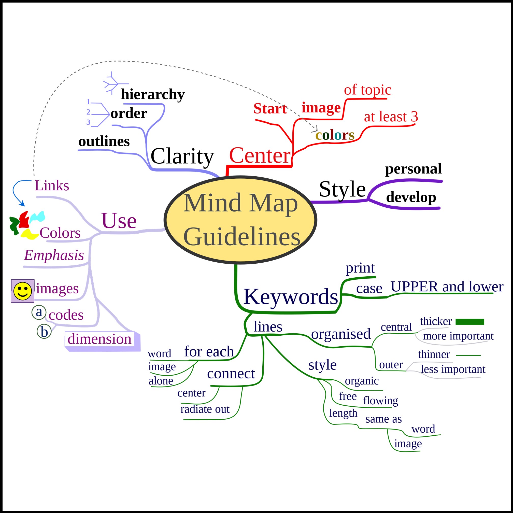 - Use images, symbols, colors, or keywords to make your mind map more attractive and memorable. You can use images to illustrate concepts or ideas, symbols to indicate relationships or categories, colors to highlight important or relevant information, or keywords to summarize or emphasize points. You can also use different fonts, sizes, or styles to differentiate between different types of information.
